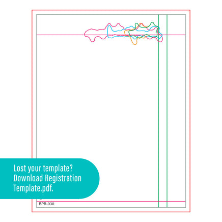 Registration Press Plate sets make creating multi-color letterpress designs simple and foolproof! Simply follow the multi-colored mylar template to layer beautiful colors onto your BetterPress paper for a stunning effect. This clever innovation enhances your letterpress abilities to the next level.