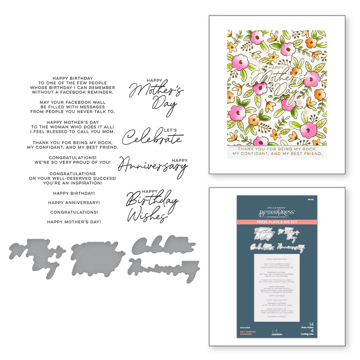 Create projects to celebrate and express gratitude using these wonderful designs! Yana Smakula offers an array of beautiful florals and lovely sentiments through press plates, dies, stencils, and more in this Let’s Celebrate Collection!