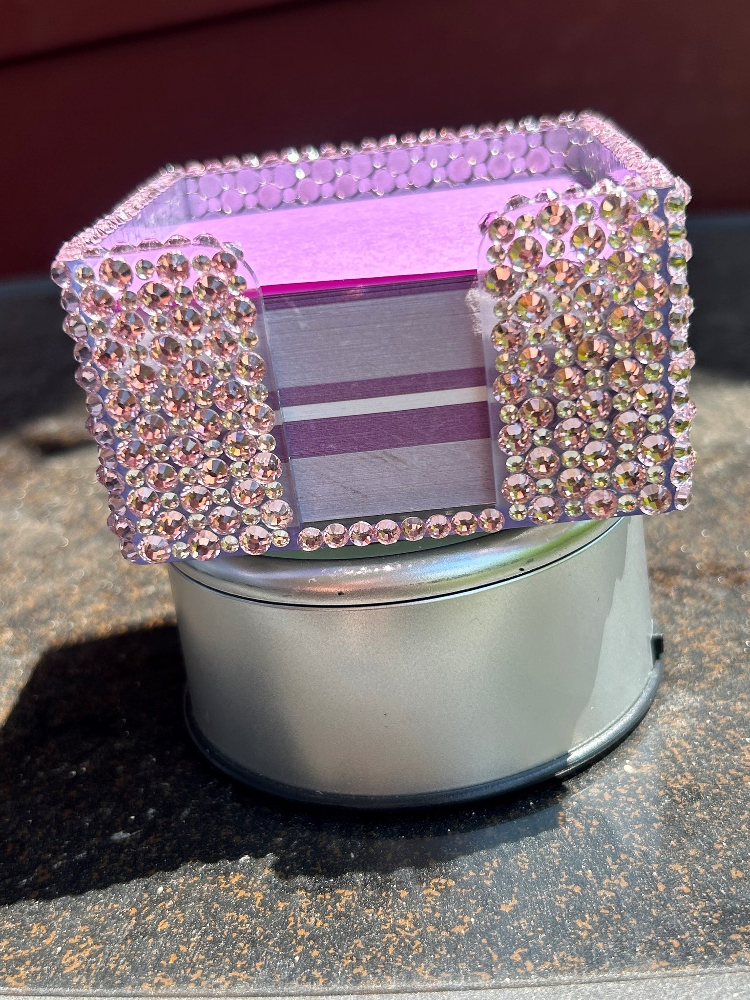This month I am starting a series that will dress up your desk-or craft space- and bring even more sparkle into your life. The first project will be a Post it note holder-I promise it is even more phenomenal in person! You will have everyone wanting one (or two) of these for themselves.