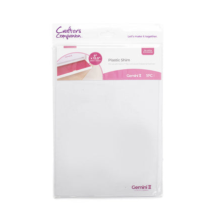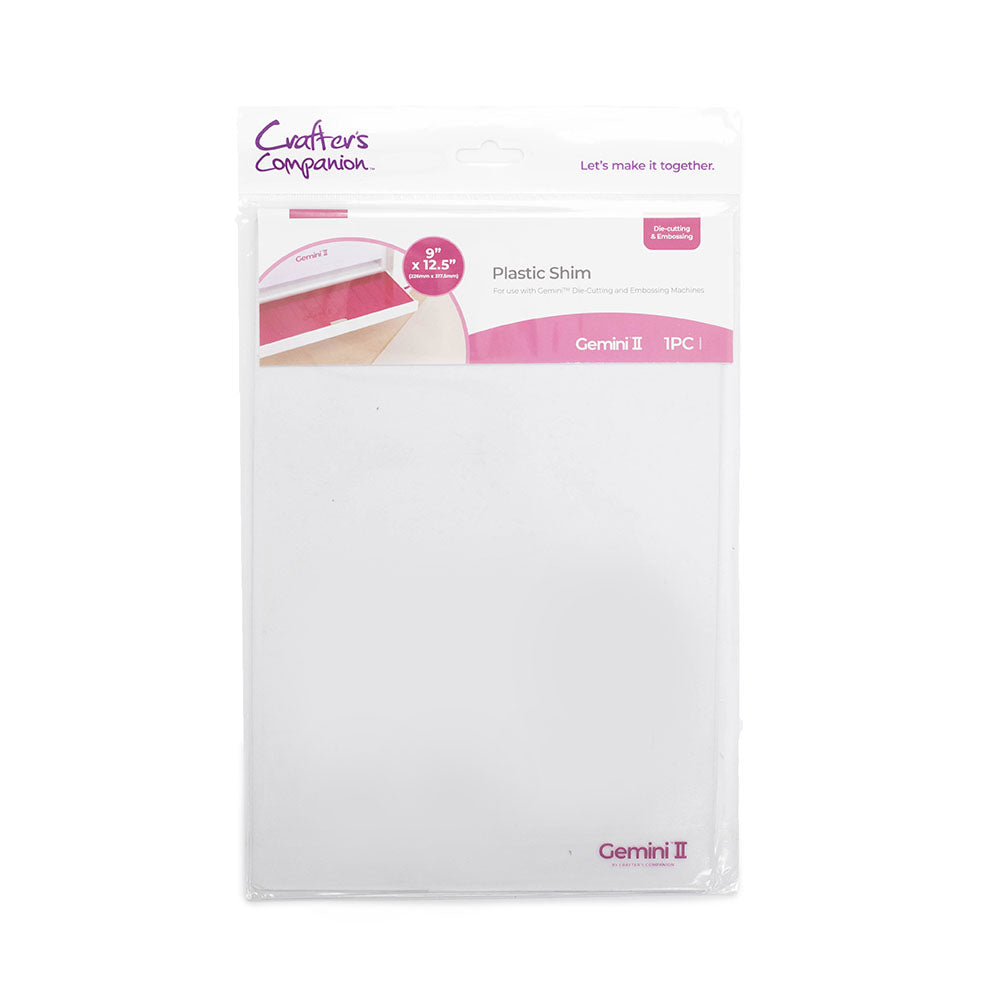 This package contains one 9" x 12.5" plastic shim that is part of the Gemini Accessories Collection from Crafter's Companion. This shim, also known as a cutting mat, is designed to cut even the most intricate designs precisely and evenly each time. It increases the power and accuracy of the Gemini, Gemini II or Gemini Pro machines (all sold separately) and can be included in your cutting sandwich with plates. To care for your plastic shim, rotate it after each use. If it starts to bow, simply flip it and pass it through your machine until it lays flat.