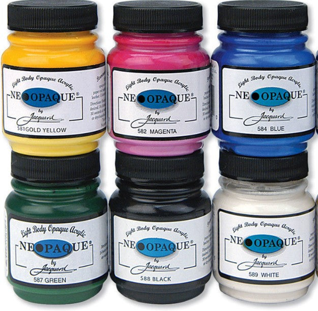 Neopaque paints brush on smoothly and remain soft and flexible when dry. Neopaque may be painted, stenciled, screen printed, airbrushed (when diluted) and stamped.