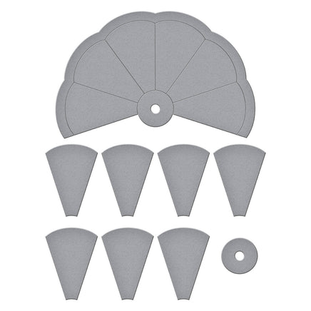 Color Swatch Wheel Etched Dies are part of the ColorWheel Swatch Party Collection. This useful set of four thin metal cutting dies cuts a half circle shape and the inner pie-shaped pieces for swatches of cardstock, ink samples and more. Create custom color palettes of your favorite shades to make designing your papercrafting projects simplier, or cut several to custom create a fabulous color wheel! Color Swatch Wheel dies are perfect for swatching anything and everything in your collection, making sure you have a quick and easy reference for what is in your stash!