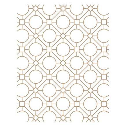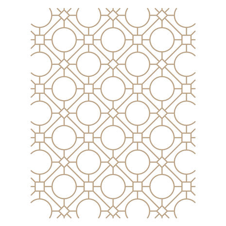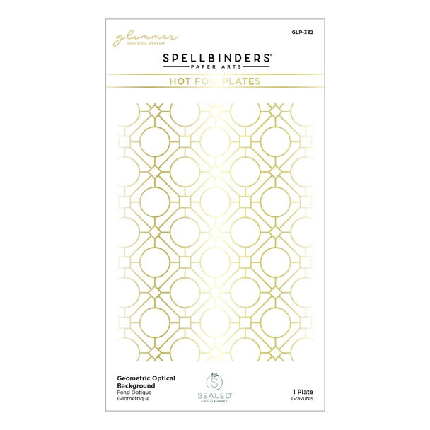 The Geometric Optical Background Glimmer Hot Foil Plate from the Sealed by Spellbinders Collection. The plate has a modern style background with a combination of circles, squares and connecting lines. This repeat pattern provides a stunning backdrop for any card creation! Coordinates with STN-032 Layered Geometric Optical Stencils.