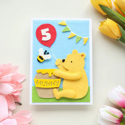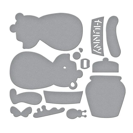 Stitched Classic Pooh Etched Dies are a set of 13 thin metal cutting dies that create sweet Pooh Bear with his favorite Hunny pot. It comes with a honeybee too! Make this adorable set even more warm and fuzzy by making them with FS-006 Classic Pooh Collection Felt Set, specially curated for friends from the 100 Acre Wood. Whether you create one silly old bear or a whole banner full, you'll love bringing this beloved friend to life in three dimensions. How can you resist?