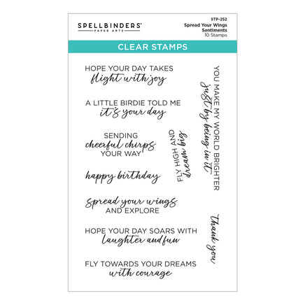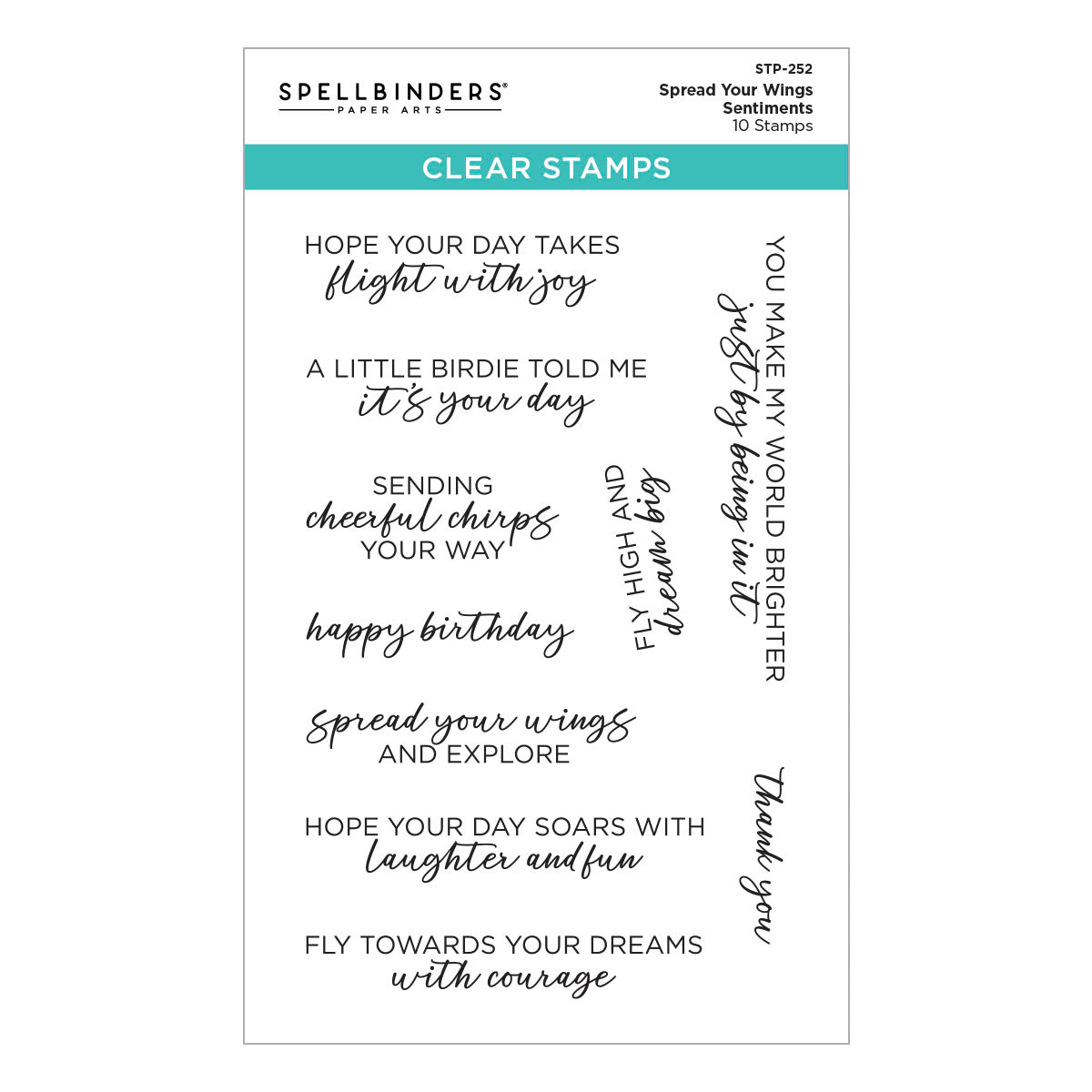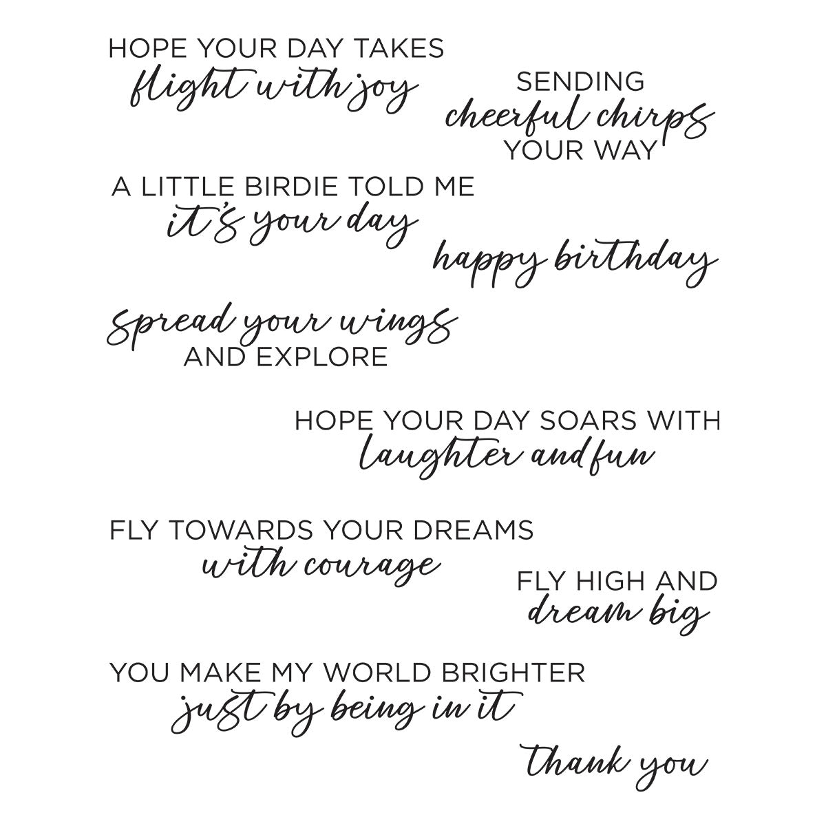 Spread Your Wings Sentiments Clear Stamp Set is from the Cheerful Chirps Collection. This set of 10 clear stamps have sentiments that cover an array of friendship and birthday greetings. Perfect to go with this collection. Each sentiment has a mix of uppercase type font with a sweet lowercase hand scripted font. They are made in the USA with high-quality polymer for perfect impressions every time. Designed to be used with a clear stamp block.