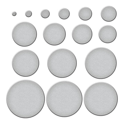 Everlasting Circles Etched Dies are part of the Everlasting Shapes Collection. This set has 16 thin metal cutting dies are fabulous addition to your die-cutting collection. Use them as solid shapes to anchor other circular shaped sets, to create perfect cut-outs for shaker cards, or to add additional dimension to your projects. Create shaped cards or try nesting two different sizes to create frames. Many designing options!Approximate Size: