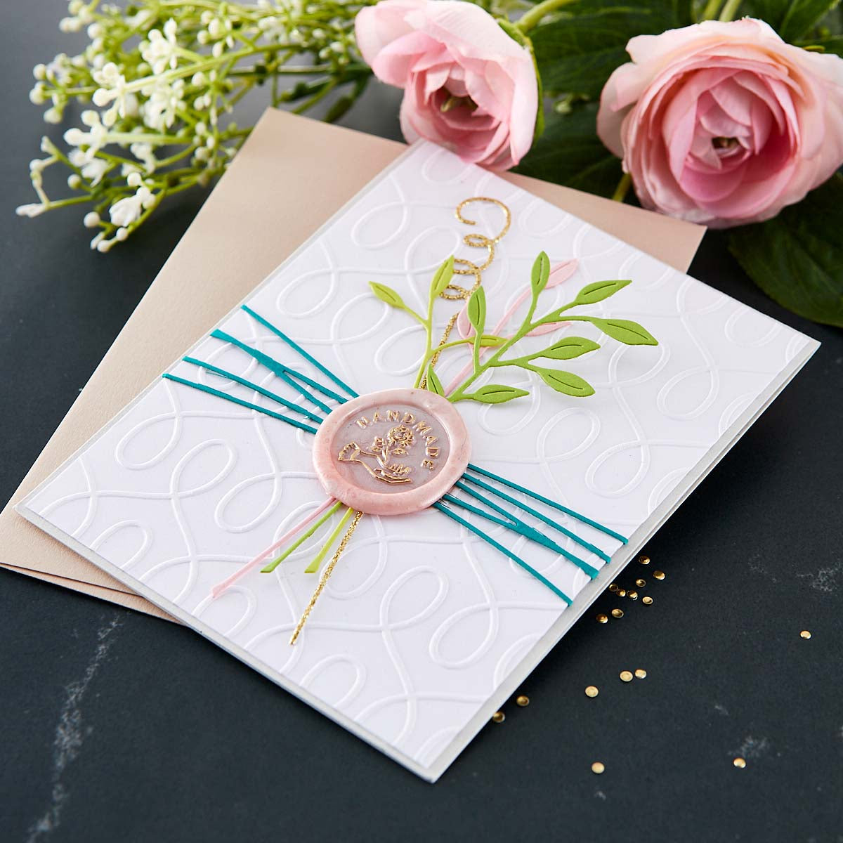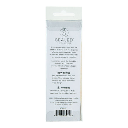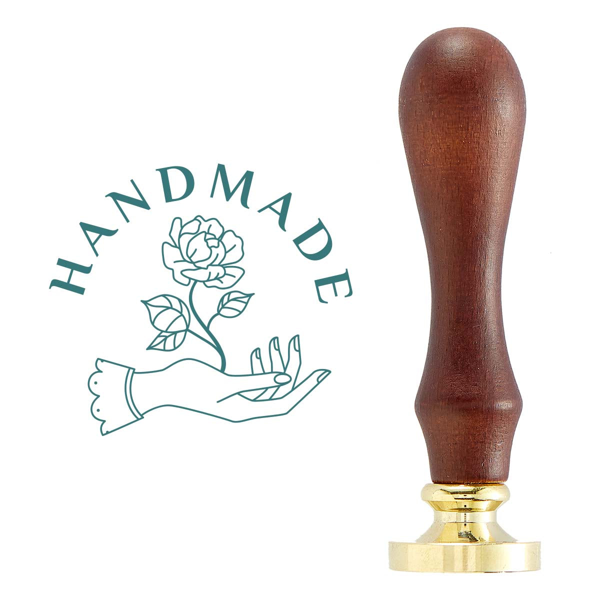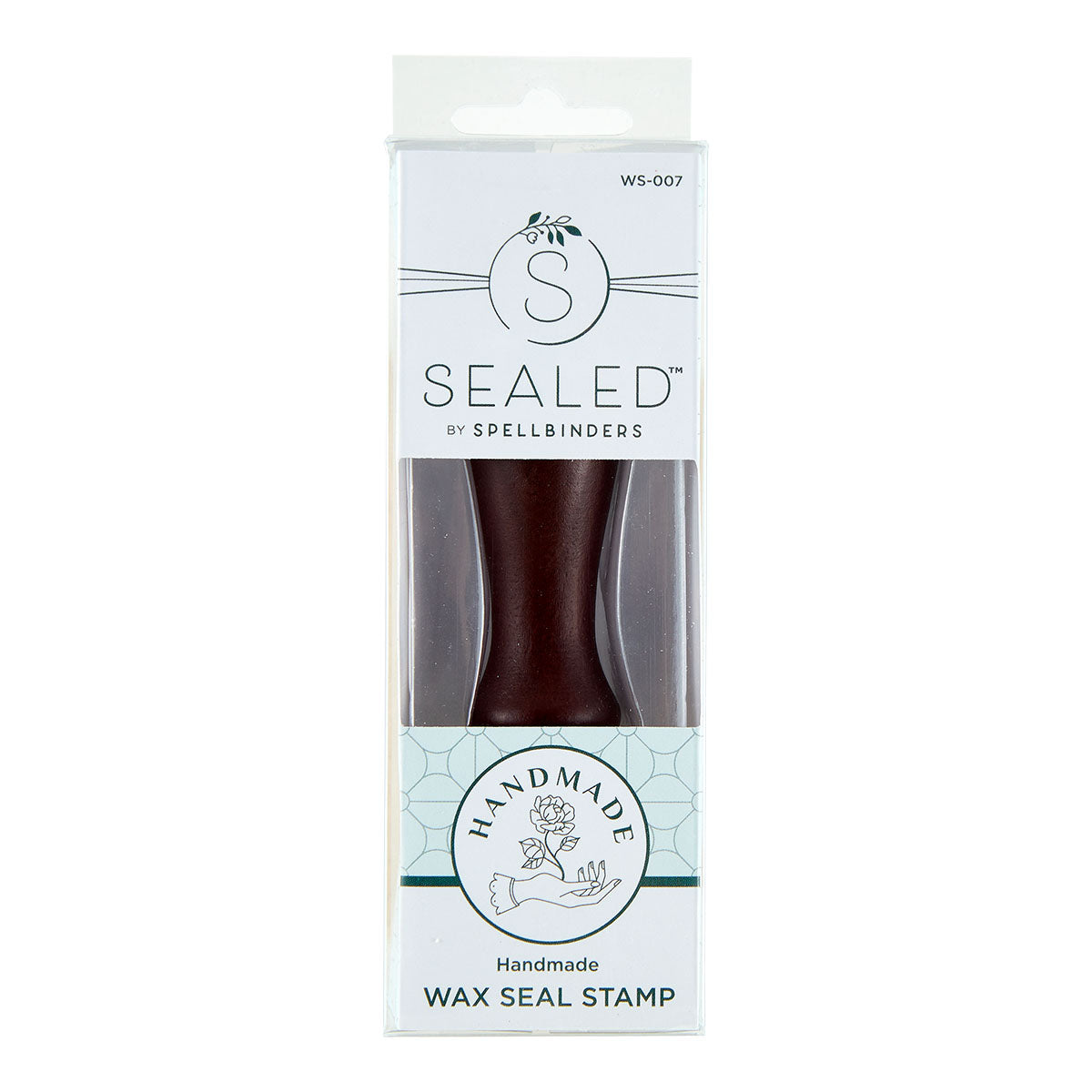 Handmade Wax Seal Stamp is part of the Sealed by Spellbinders Collection. It has one wooden handle that supports a 1" round brass seal stamp design on its end. The stamp design has HANDMADE on the top edge of the design with a hand and stemmed flower in the center. Add elegant and unique wax seal accents to your cards, envelopes and more!