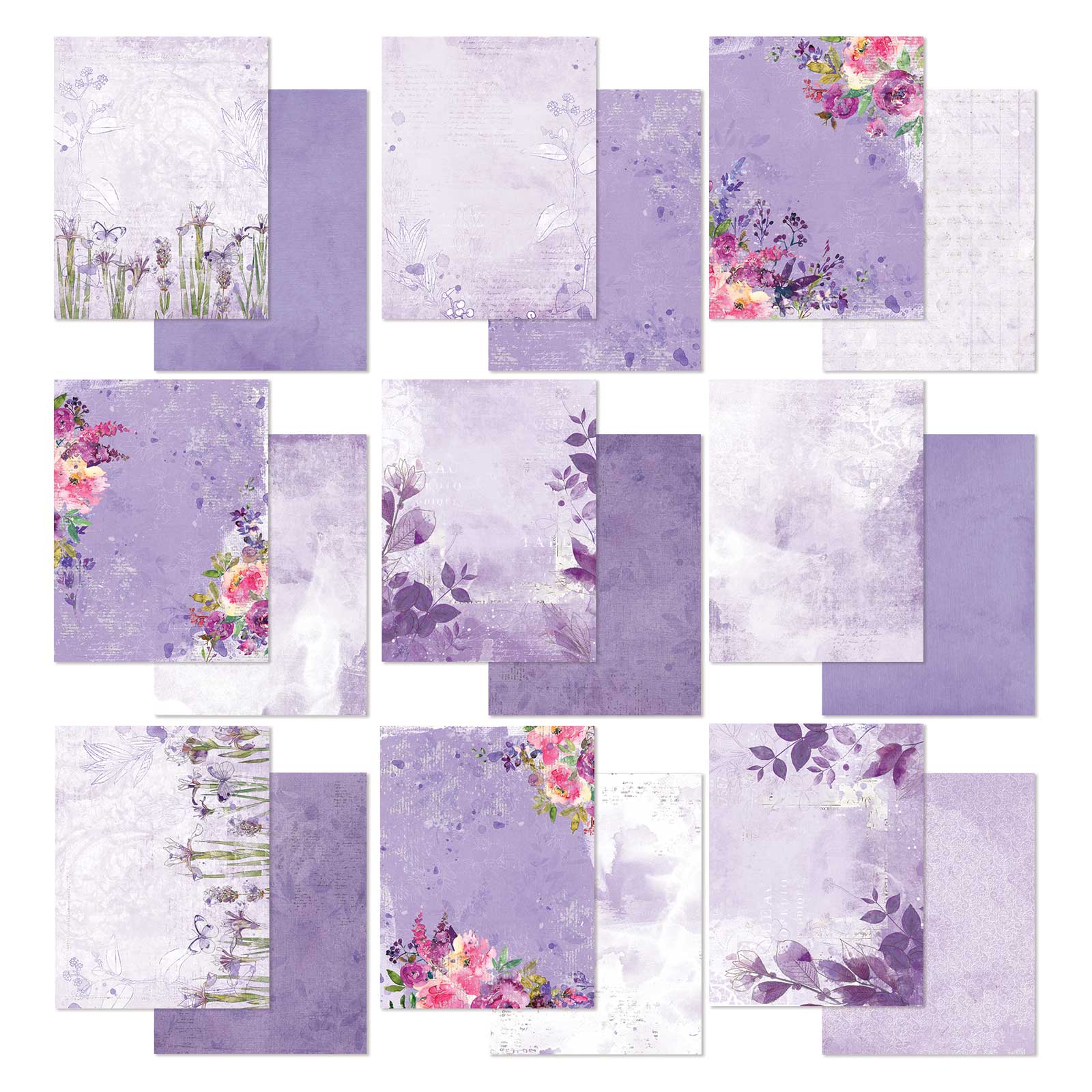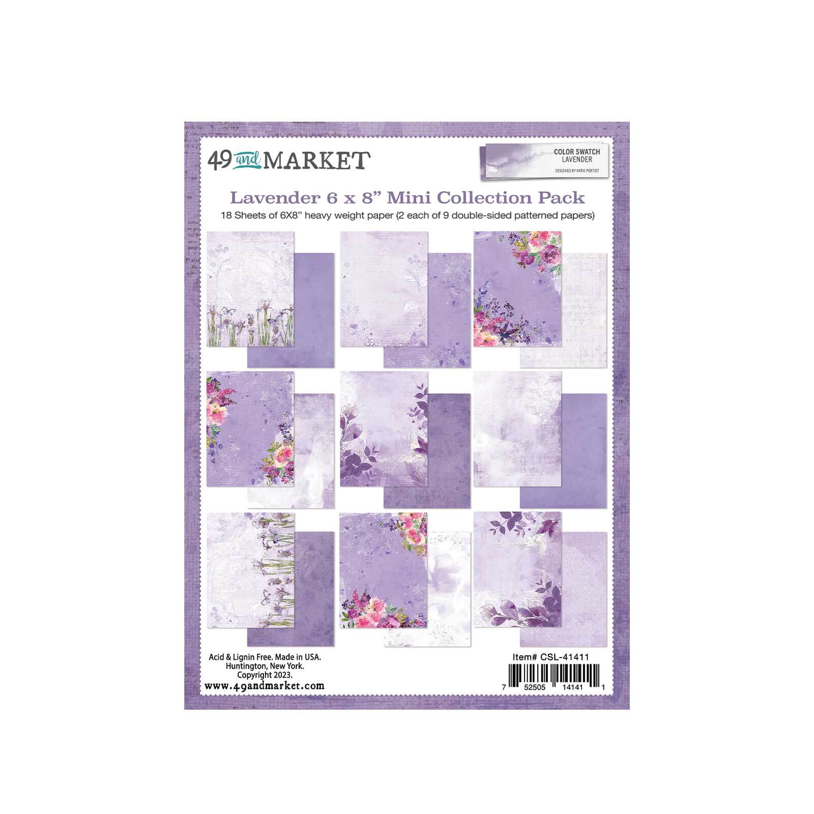The calming shades of lavender come to life in this Color Swatch collection. The Color Swatch series of colors are ideal for working in a monochromatic fashion or to enhance other 49 and Market Collections. The Lavender 6×8″ Mini Collection Pack includes a total of 18 double-sided papers (2 each of 9 double-sided designs). Made in USA