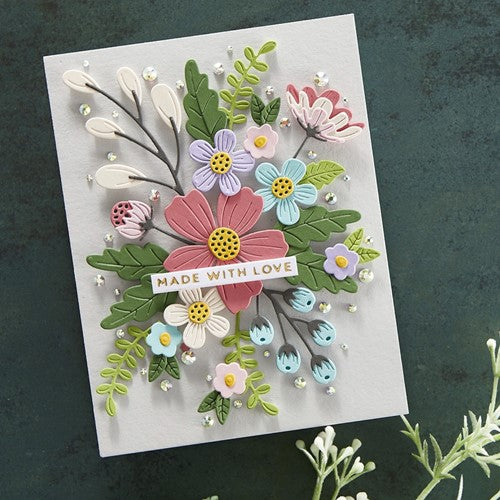 This Be Bold Blooms Etched Dies is part of the Be Bold Collection. The set of 21 thin metal dies creates a fabulous spray of big and bold blooms! Use some or all of them, it goes well with any type of projects that calls for a wonderful floral motif!