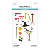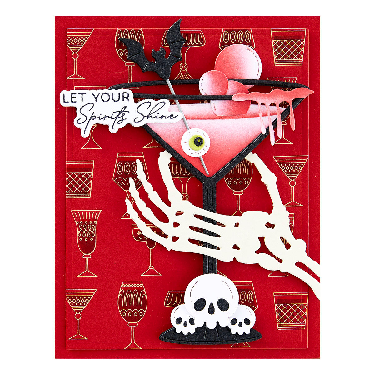 Boos! Cocktails Etched Dies are part of the Happy Hour Collection. Boo to You with this set of 16 thin metal cutting dies full of fun spooky accessories. Everything you need for a ghoulishly fun drink is included, even a Witch’s Hat! Use with S4-1372 Olive Martinis set for the glass base, or all on their own!