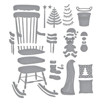Christmas Rocking Chair Etched Dies are from the Country Christmas Collection by Annie Williams. Add a warm rocking chair to your project with this set of 26 thin metal cutting dies…a perfect cozy vibe for any holiday creation. With many accessories, you can customize your look!