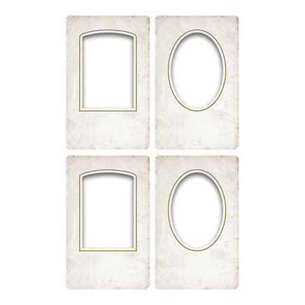 Collage frames are vintage-styled bookboard frames printed on thick chipboard. Since it is thick and sturdy, it provides a foundation for you to build on. These frames are perfect to use in mixed media and collage projects.