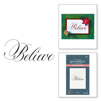 Copperplate Believe Press Plate is from the Copperplate Holiday Sentiments Collection by Paul Antonio. This plate presses the word, Believe, in an elegant Copperplate script onto your card creation.
