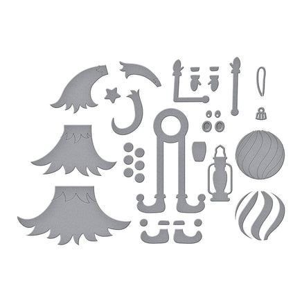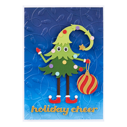 Dancin’ Douglas Etched Dies are from of the Dancin' Christmas Friends Collection with a set of 19 thin metal cutting dies. When assembled, it creates an adorable and whimsical tree! The moving legs swing back and forth. There are other fun accessories in the set to brighten Douglas up. Who can resist that curved tree top?!