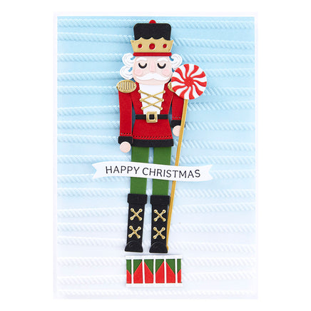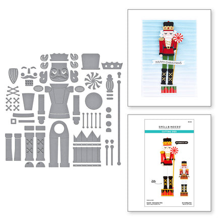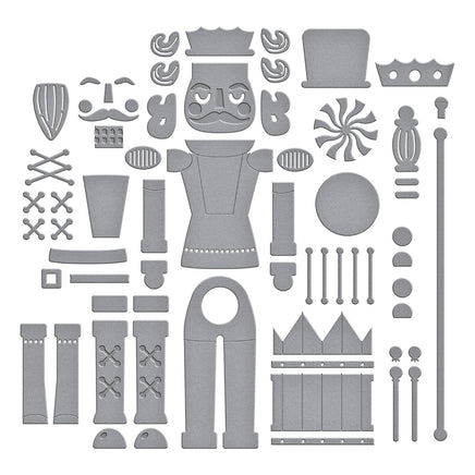 Dancin’ Nutcracker Fritz Etched Dies is part of the Dancin' Christmas Friends Collection with a set of 28 thin metal cutting dies. When assembled, it creates a wonderful nutcracker with moving legs that swing back and forth. He is one tall nutcracker measuring almost 6.50 inches tall! There are other fun accessories in the set to deck him out in finery.