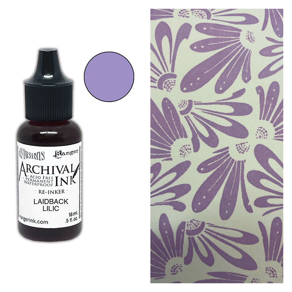Dylusions Mini Archival Inks™ pads can be easily re-inked to refresh your ink pad.  Archival Inks are permanent on many surfaces providing long lasting detailed stamping results that won't bleed when used with water-based inks, markers, acrylic paint and watercolors.  Reinkers can be stored easily in the Tim Holtz Alcohol Ink Storage Tin.  Available in a variety of colors that coordinate with the Dylusions palette.  Dylusions Archival Reinkers are available in 0.5oz (14.7ml) bottle