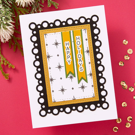 Essential Tag Accessories Press Plate & Die Set is part of the Essential Holiday Collection by Lisa Horton. With ten press plates of holiday sentiments and icons, this is the perfect set to add the finishing touch to your holiday projects. The sentiments include 'Do Not Open Until 25th' and 'Ho Ho Ho', sized to fit the tags in S4-1375 Essential Tags. Also included is a playful vertical 'Happy Holidays' with accompanying dies and three other sentiments to complete the holiday messages. With two corner icons of evergreen boughs and holly, as well as a sweet bow and coordinating die, this is one set you'll use again and again!