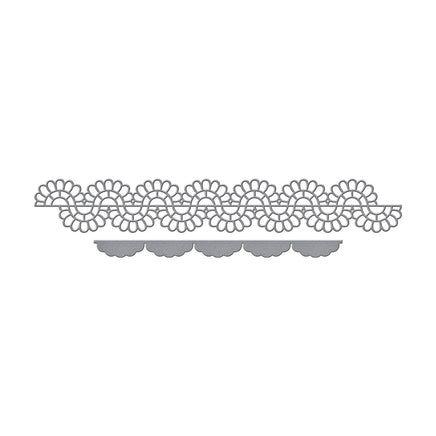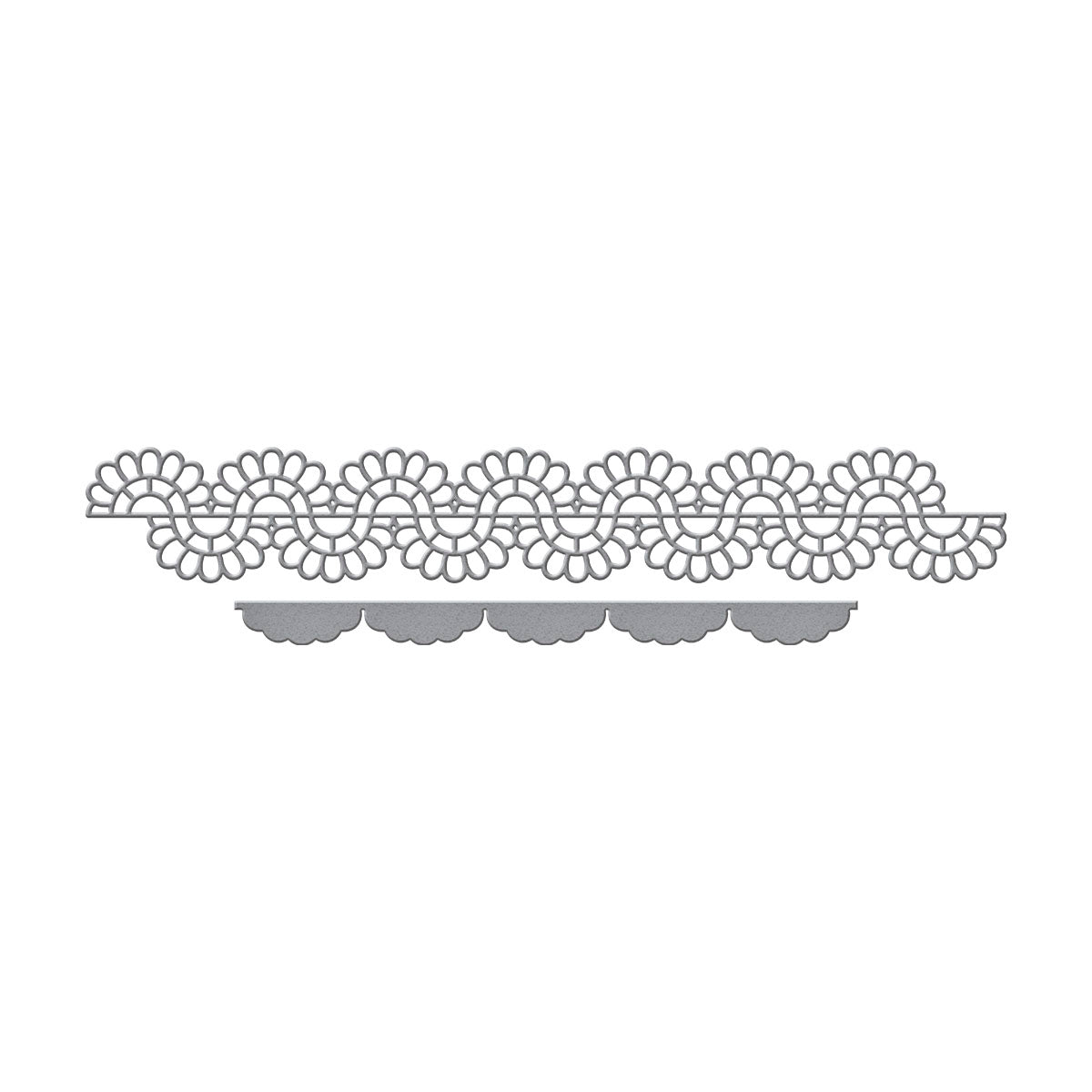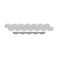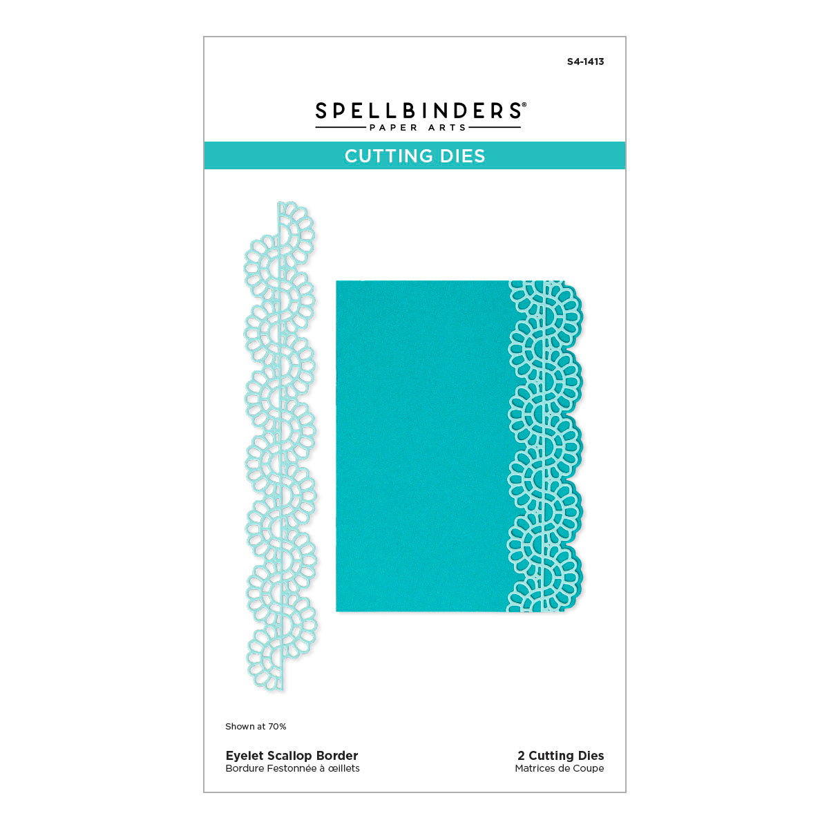 Eyelet Scallop Border Etched Dies are part of the Vivid Expressions Collection. Die-cut the set of two thin metal cutting dies to make a delicate eyelet scalloped border. Nest the border die and rim together to make a lovely eyelet scalloped edge. The finished border measures 8.13 x 1.20 in./20.00 x 3.10 cm.