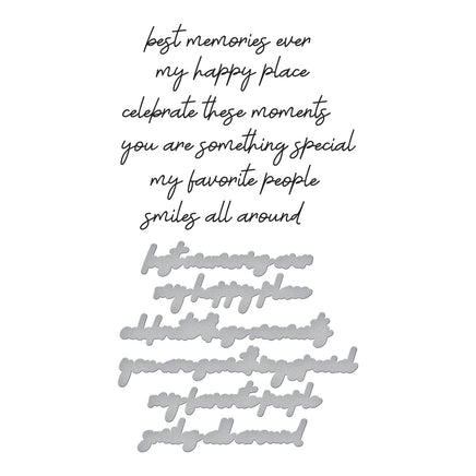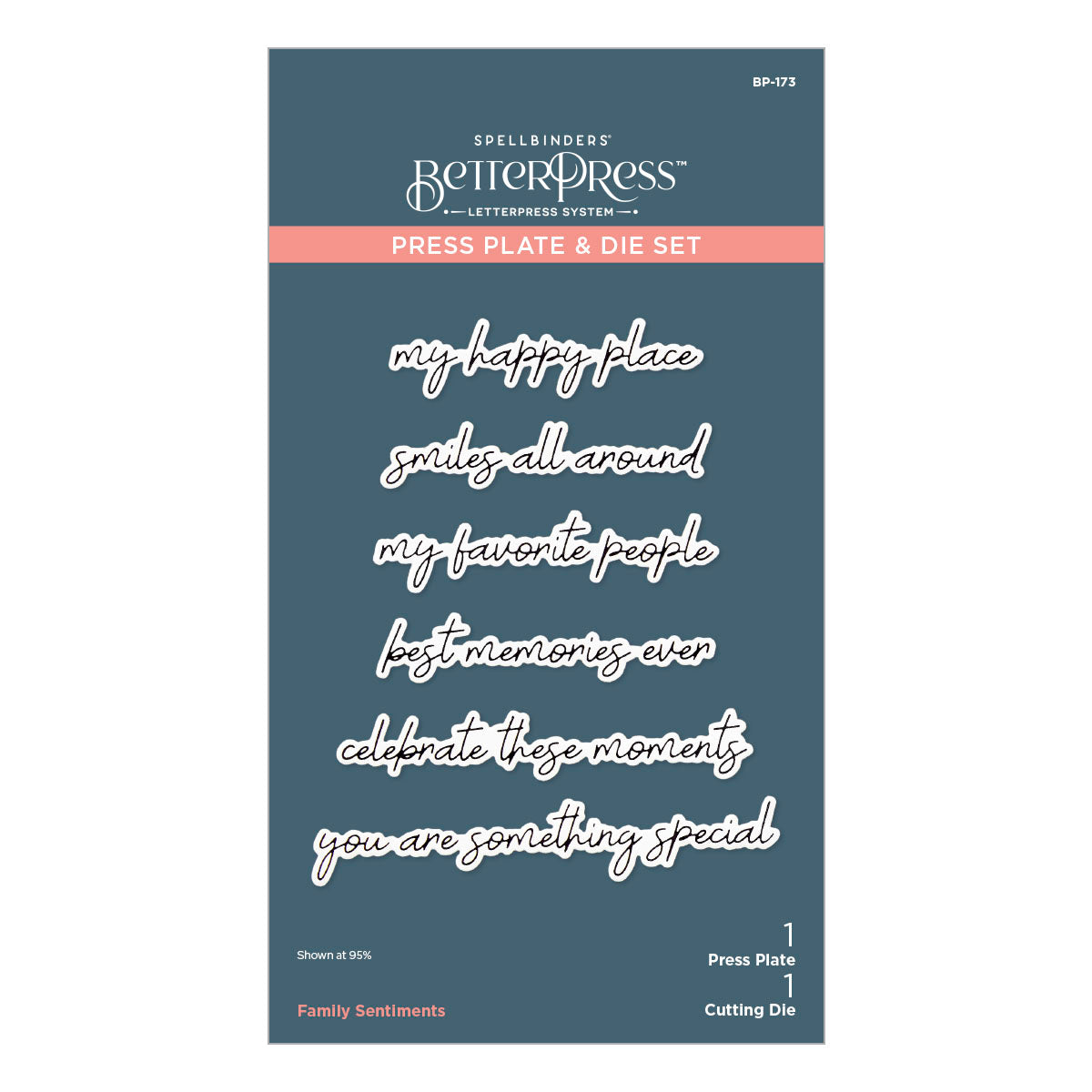 Family Sentiments Press Plate & Die Set is part of the Storytelling by Spellbinders Scrapbooking Collection. Impress the entire plate full of everything that surrounds family in sentiments and phrases on a sweet lowercase script font. Its matching thin metal cutting die will cut all at the same time. A great time saver! Use one and keep the others for another project or use them all up.