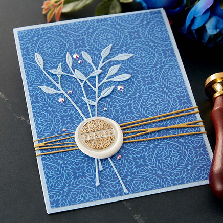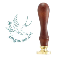 Forget Me Not Wax Seal Stamp is part of the Sealed by Spellbinders Collection. It has one wooden handle that supports a 1" round brass seal stamp design on its end. The stamp design has Forget Get Me Not on the bottom edge of the design with a flying bird and a flower in its beak. Add elegant and unique wax seal accents to your cards, envelopes and more!