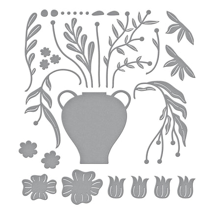 Fresh Picked Vase Bouquet Etched Dies are from the More Fresh Picked Collection with a set of 16 thin metal cutting dies. Pick from the many choices of flowers! Use them as accents or put them in the vase in the set to make a lovely focal point on a card or other paper crafting project.