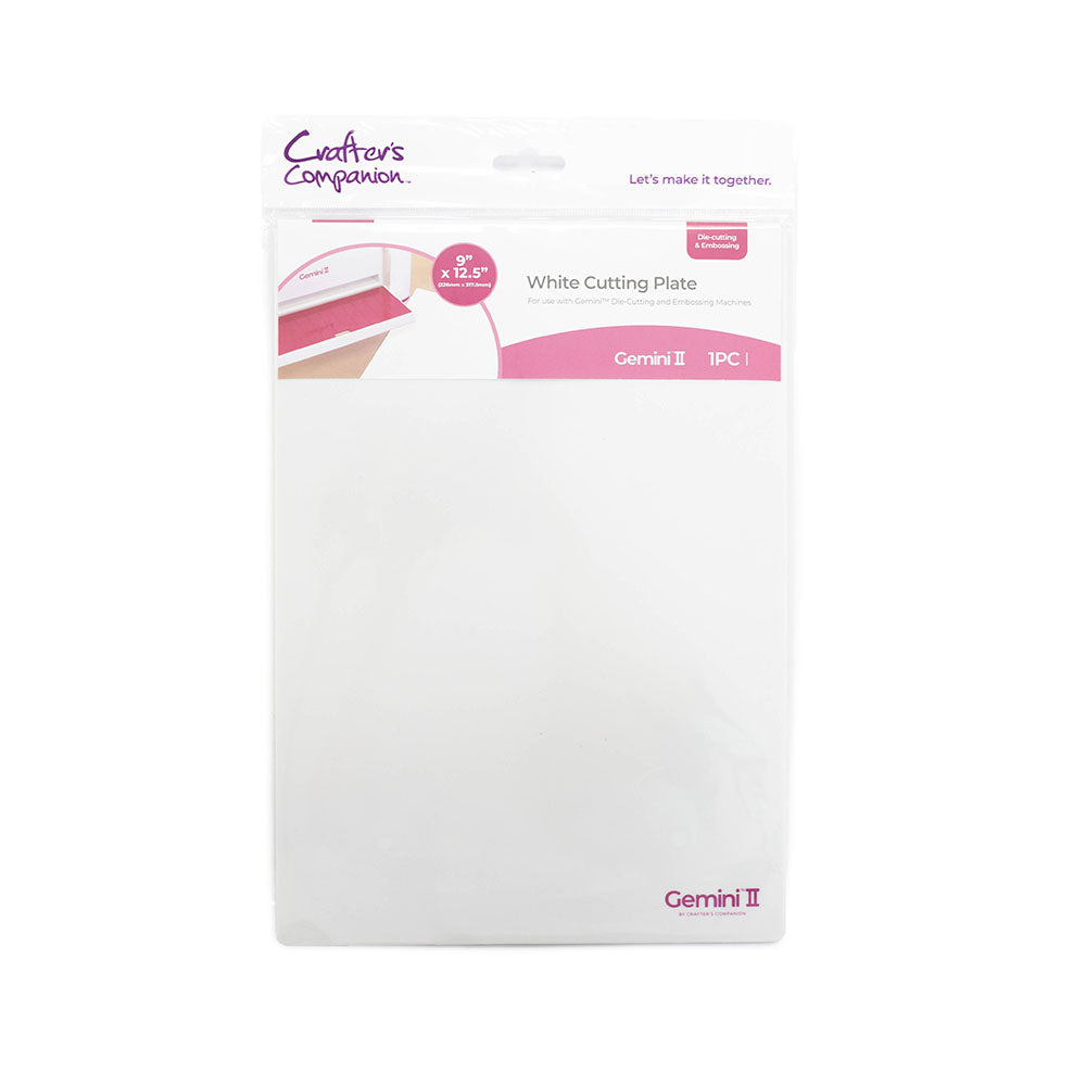 This package includes one 9" x 12.5" white cutting plate that is part of the Gemini Accessories Collection. This plate, also known as a cutting mat, is designed to protect your metal dies and other materials when using the Gemini, Gemini II, or Gemini Pro machines (all sold separately). This plate is specially designed to enable the optical sensor on the Gemini II machine to activate the motor automatically.  This plate cuts materials up to A4 or 8.5" x 11" in size. This plate is designed to last a long time but to keep this plate in shape, flip and rotate it after each pass through your machine.