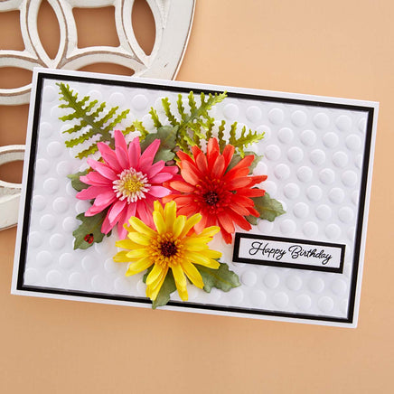 Gerber Daisy Etched Dies are from the Painter’s Garden Collection by Susan Tierney-Cockburn and is a set of six thin metal dies. Make these cheerful blooms in many bright colors and spread kindness with them! A wonderful addition to any flower-loving maker. Assembled bloom measures 0.50 x 3.00 x 3.00 in./1.30 x 7.60 x 7.60 cm.