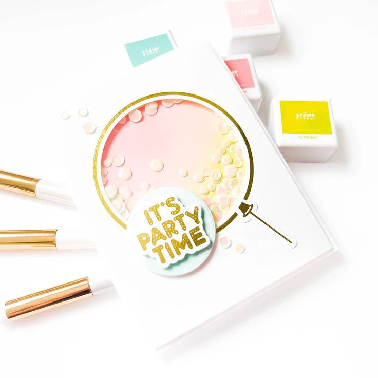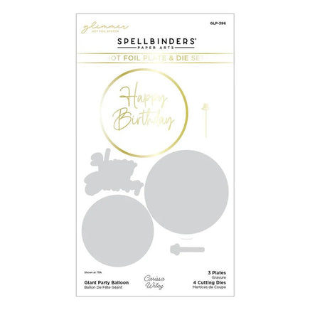 Giant Party Balloon Glimmer Hot Foil Plate & Die Set is part of the It’s My Party Collection by Carissa Wiley with a set of three hot foil plates and four thin metal cutting dies. It has everything you need to create a stunning foiled balloon shape with each one having its matching cutting die. Use the circle balloon shape to cut a ring or a shaker feature for more designing possibilities!
