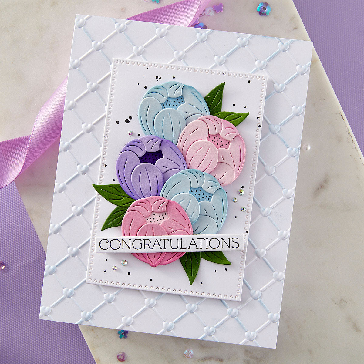 Gorgeous You Florals Etched Dies are part of the Gorgeous You Collection. These sweet blooms can be used for floral accents on any project. But this set of 10 thin metal cutting dies is designed to fit into theS4-1359 Gorgeous You Perfume Bottle Etched Dies. Together, it adds a beautiful visual to the stunning perfume bottle ensemble.