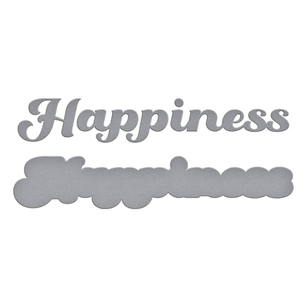 Happiness Etched Dies are from the Storytelling by Spellbinders Scrapbooking Collection and includes a set of two thin metal cutting dies surrounding the word, Happiness. It cuts a big bold font with an outline to help highlight the word more.