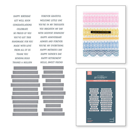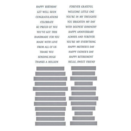 Ideal Moments Press Plate & Die Set is part of the Vivid Expressions Collection. Each of the two plates press 12 sentiments all at once and cut with its matching thin metal cutting die for a time-saving step. There’s a total of 24 sentiments to choose from. The uppercase font sentiments cover many occasions from get well, handmade for you, thank you, welcome little one, happy anniversary, happy mother’s day, happy father’s day, happy retirement, and so many more! Ink the plates with the BetterPress Ink to be pressed against the BetterPress Cotton Card Panel and Sheets for a crisp letterpress design.
