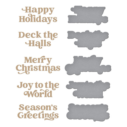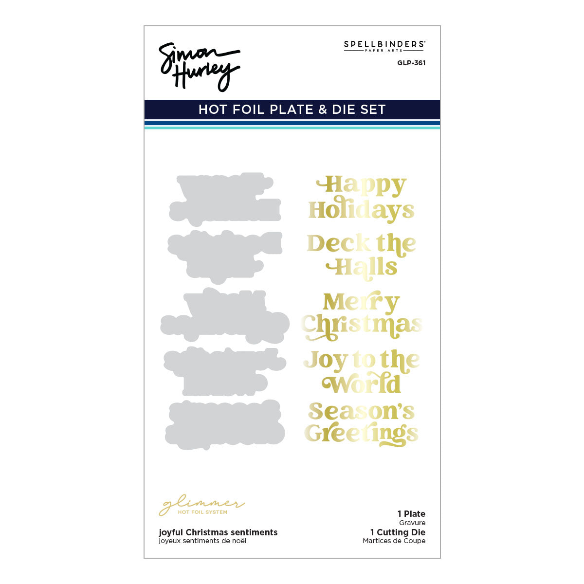 The Joyful Christmas Sentiments Glimmer Hot Foil Plate & Die Set is a part of the Joyful Christmas Collection by Simon Hurley. On one hot foil plate, five bold font holiday sentiments can be foiled all at once. Using its matching die, all the sentiments can be die-cut at the same time. Perfect for creating many holiday cards in a short amount of time!