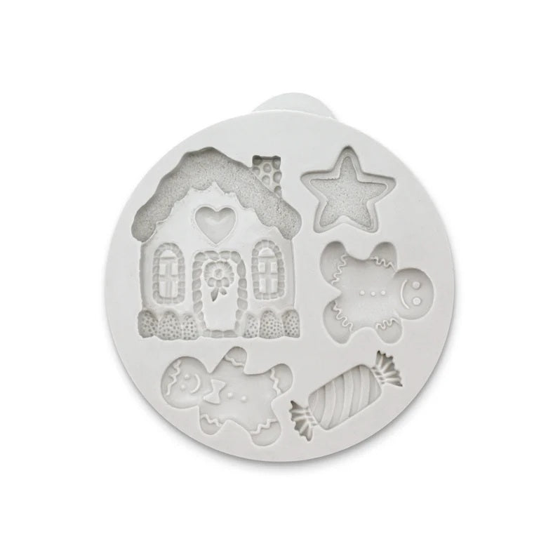 This silicone mould creates the sweetest Christmas gingerbread-themed miniature embellishments, including a gingerbread house, gingerbread man and gingerbread woman. Ideal to add fun decorations to cookies, cupcakes or craft projects. The fine detail of the designs are picked out particularly well using chocolate, resins and clay.