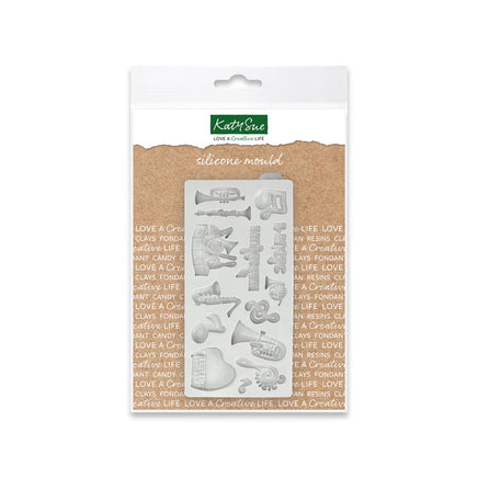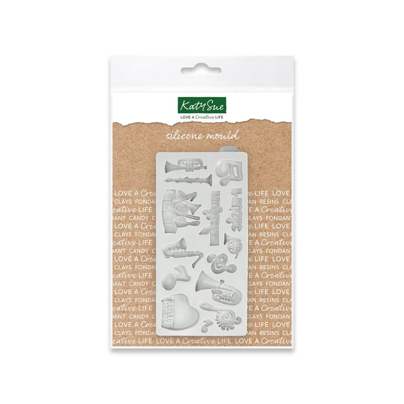 Create a wide selection of musical instruments and embellishments with ease, using this detailed silicone mould. Great for use with resin and clay, the mould will work for a variety of projects such as card-making and mixed media crafts, or for making miniature decorations for cookies and cupcakes. The highly detailed design features a trumpet, French horn, clarinet, saxophone, piano, musical notes and much more.