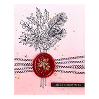 Poinsettia Bouquet 3D Wax Seal Stamp is part of the Happy Haunting Collection. It has one wooden handle that supports a larger size of 1.00 x 1.25 in. oval brass stamp design on its end. It stamps a ghoulish floating ghost.