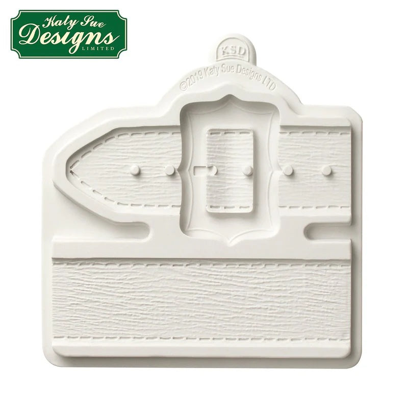 This silicone mould has two elements on. One is the end of a belt with a large buckle and the second part is a section of just the belt. This can be used to create a belt to whatever length you wish! You can also join both parts together, to form a long belt with a buckle on the end. The belt has a leather style texturing, as well as stitched detail top and bottom.