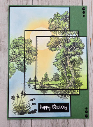 I used Distress Oxide inks, Broken China, Uncharted Mariner, Mowed Lawn, Scattered Straw and Vintage Photo or Frayed Burlap.