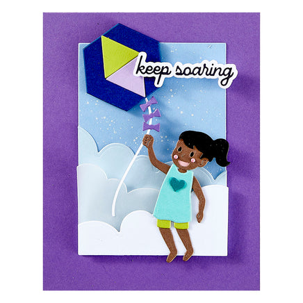 The Sky’s the Limit Collection soars to new heights with your paper crafting creations. Fun elements of kites, kids and more are made from cutting dies to stenciling to embossing. So let your creativity take flight!