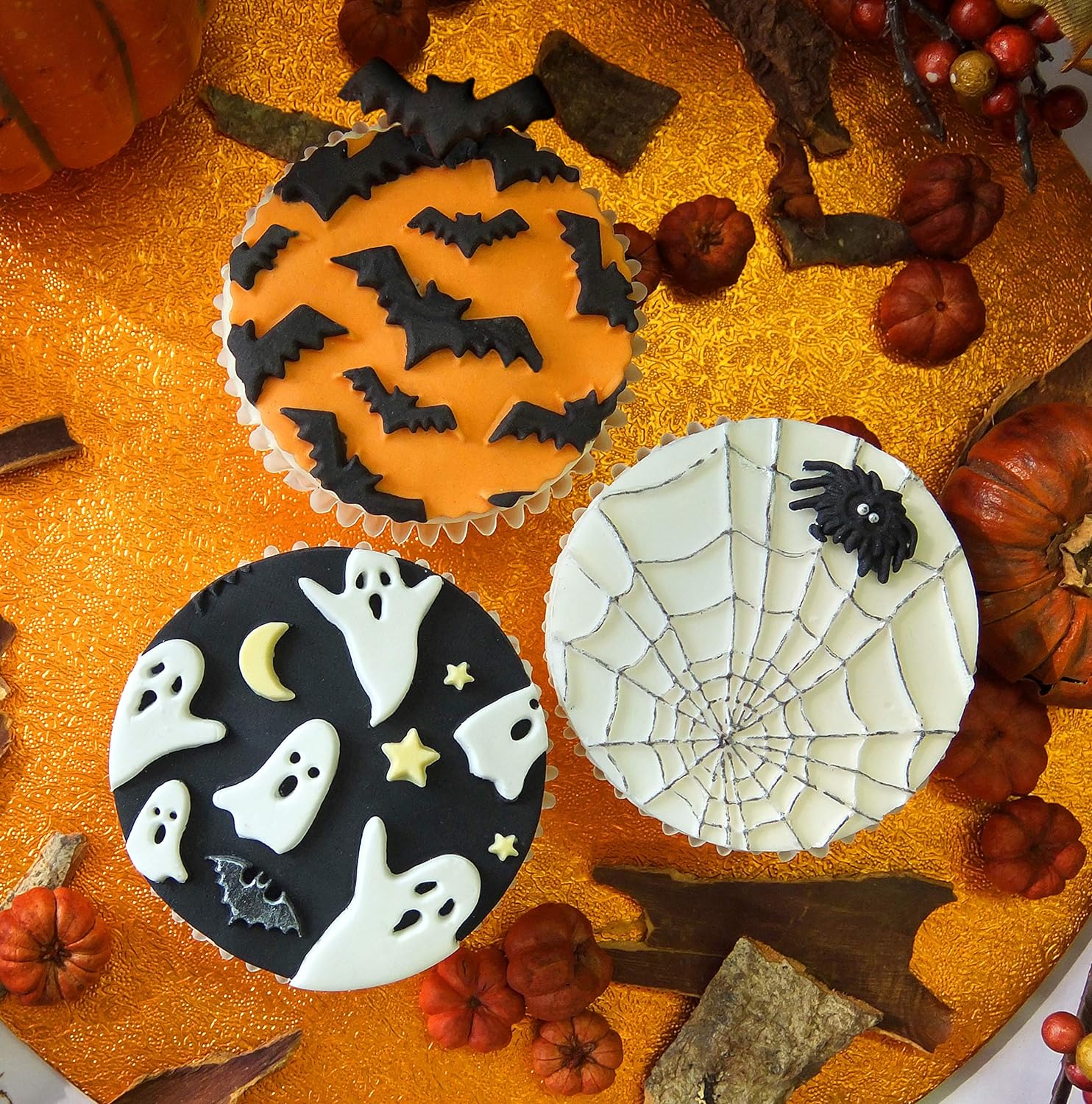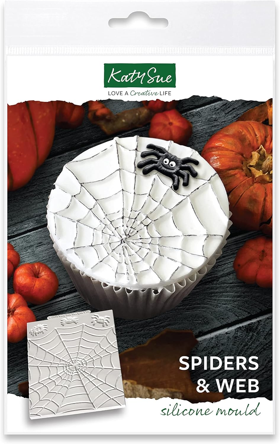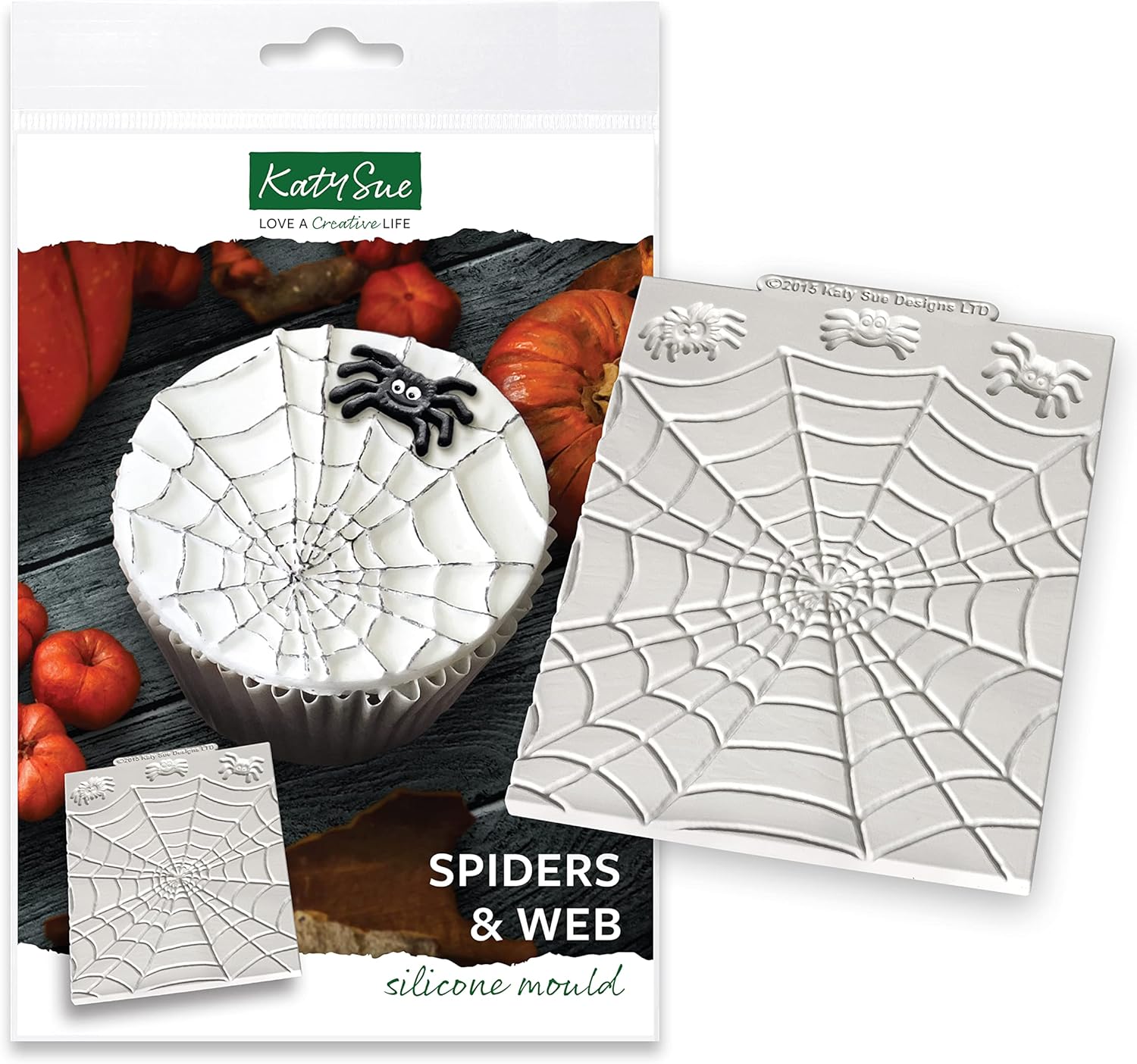 A fun Halloween themed silicone design mat mould to create a decorative border, repeating pattern or decorative plaque for your cake decorating project. Create a Halloween themed spider border or plaque decoration for your cake decorating projects using this set. This design mat allows you to create one large spider web or mould individual spiders. Roll out fondant or sugar paste over the mat, then use fondant designs to cover mini cakes, plaque’s or use with a cookie cutter to cover cupcakes and cookies. It is highly detailed and looks great even without the need to paint.