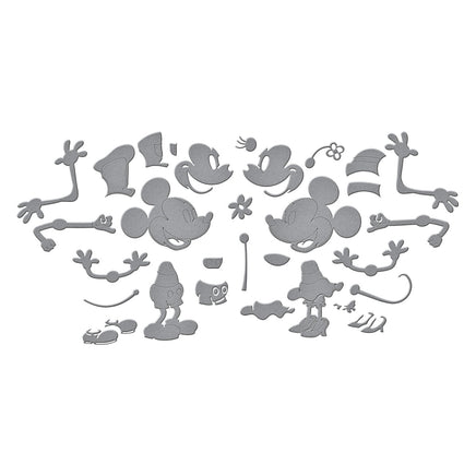 Steamboat Willie Duo Etched Dies are the cornerstone of the Say Cheese Classic Mouse Collection. Create detailed and layered die cuts of your favorite mouse couple. Whether you use all the pieces to give them hats and flowers, or go with a paired down, classic look, this set of 34 dies will have you saying "Golly!" and reaching for more paper! These two sweethearts are designed to face each other, and they have multiple arm options to make sure they've got the perfect expression. These cuties are perfect for pairing with the other dies in the collection, especially S4-1470 Frame & Sentiments. This charming (and big!) set is sure to become and instant favorite.
