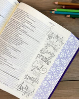 - More than 100 Bible verse line-art images throughout that can be colored in or used as inspiration for Bible memory.
