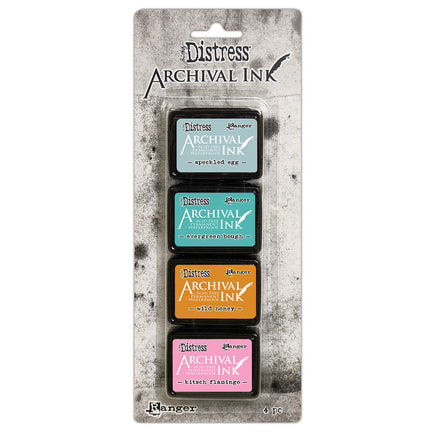 Tim Holtz Distress® Mini Archival Ink pads are waterproof, acid-free dye inks featuring the classic Distress color palette in the same fade resistant formula used in Ranger Archival Ink. Archival Inks are permanent on many surfaces, providing long lasting detailed stamping results that won’t bleed when used with water-based inks, markers, acrylic paint, and watercolors. Ink pads can be easily re-inked with the coordinating Tim Holtz Distress® Archival Ink Re-inker. The small convenient 1.25” x 1.75” size pad make these inks ideal for various craft and mixed-media projects and can be stored in the Mini Archival Ink Storage Tin.
