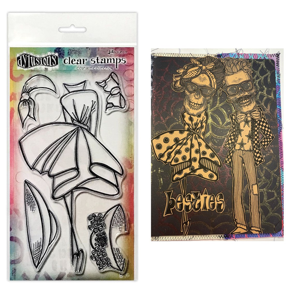 Bring style to your mixed media, art journaling projects, and more with Dylusions Couture Collection Clear Stamps. A collection of elegant, high-fashion figures and accessories, these clear stamps feature original designs by Dyan Reaveley. Clear stamps work great with Dylusions Inks, Paints, and more. Available in 10 sets, each stamp measures 5” x 9”.
